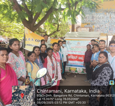 The SLES College of Nursing campus is located on Chelur Road, near the railway track in Chintamani, approximately 73 km from Bangalore City.